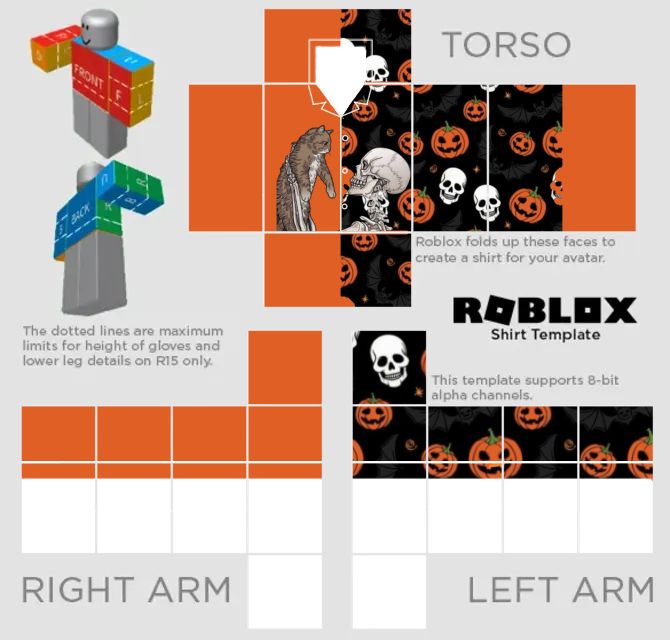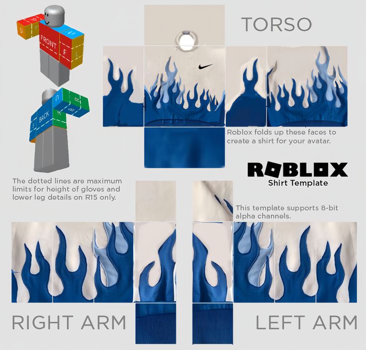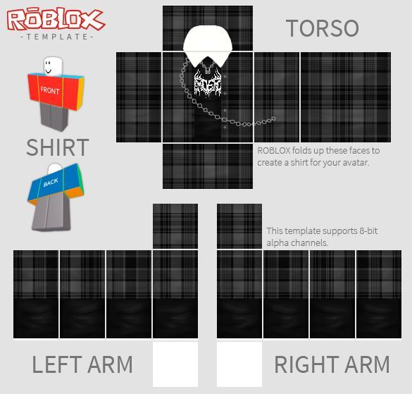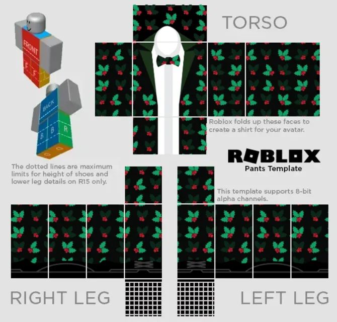 Template biasanya berbentuk gambar berformat PNG dengan panduan posisi lengan, tubuh, dan kaki, sehingga desain yang dibuat bisa pas saat digunakan oleh avatar Roblox. Motifnyapun bermacam macam. Baju roblox boy alias laki laki biasanya dominan warna hitam dan gelap. Selain itu banyak juga yang menggunakan karakter animasi seperti spiderman, batman, naruto, superman dan lain sebagainya. Sedangkan baju roblox girl umumnya didominasi warna pink dan warna warna cute.